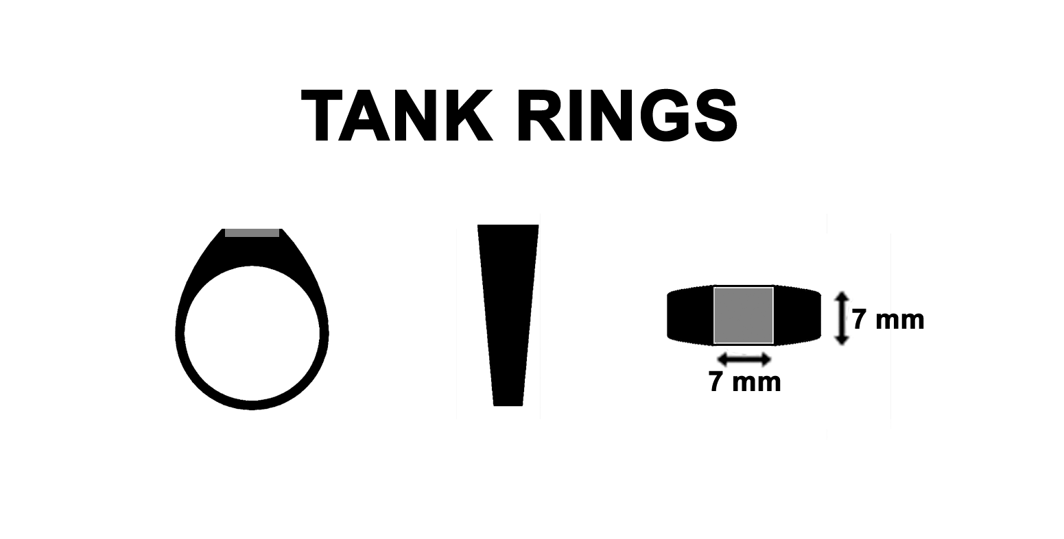 This Tufts University tank ring comes with a light blue simulated aquamarine stone. It is beautifully engraved in your choice of yellow or white gold or sterling silver. Personalize your ring with free engraving. Under the stone, we will engrave "TUFTS" on one side and your graduation year on the other side. On the inside, you have up to 4 characters to engrave your initials. On the sides of your ring, you may select from our library of Tufts engravings, which includes Jumbo the Elephant, Greek logos, athletics and activity symbols. You can also upload a custom design for the sides of your ring.